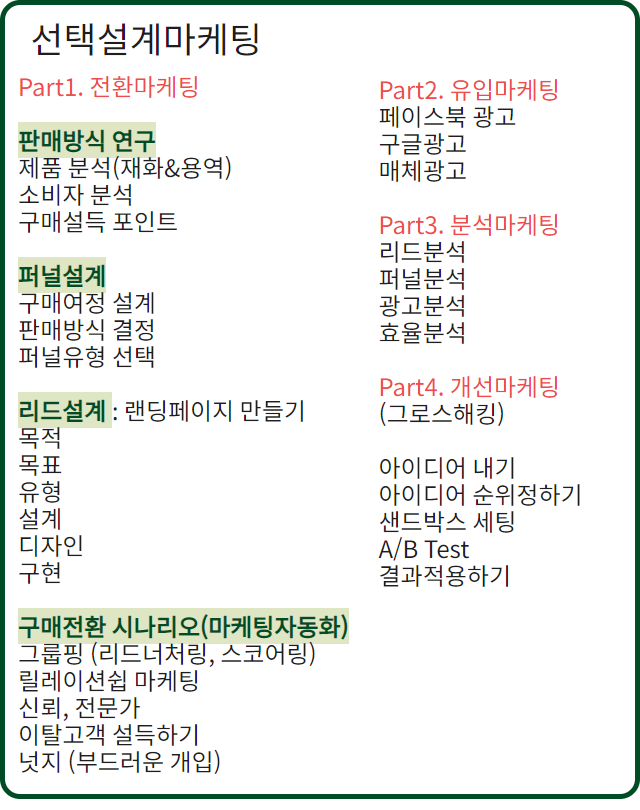 각자의 아이템으로, 없으신 분들은 아카데미에서 제공해 드리는 아이템으로 6주동안 선택설계마케팅의 전 과정을 직접 해보실수 있도록 커리큘럼이 구성되어 있습니다.