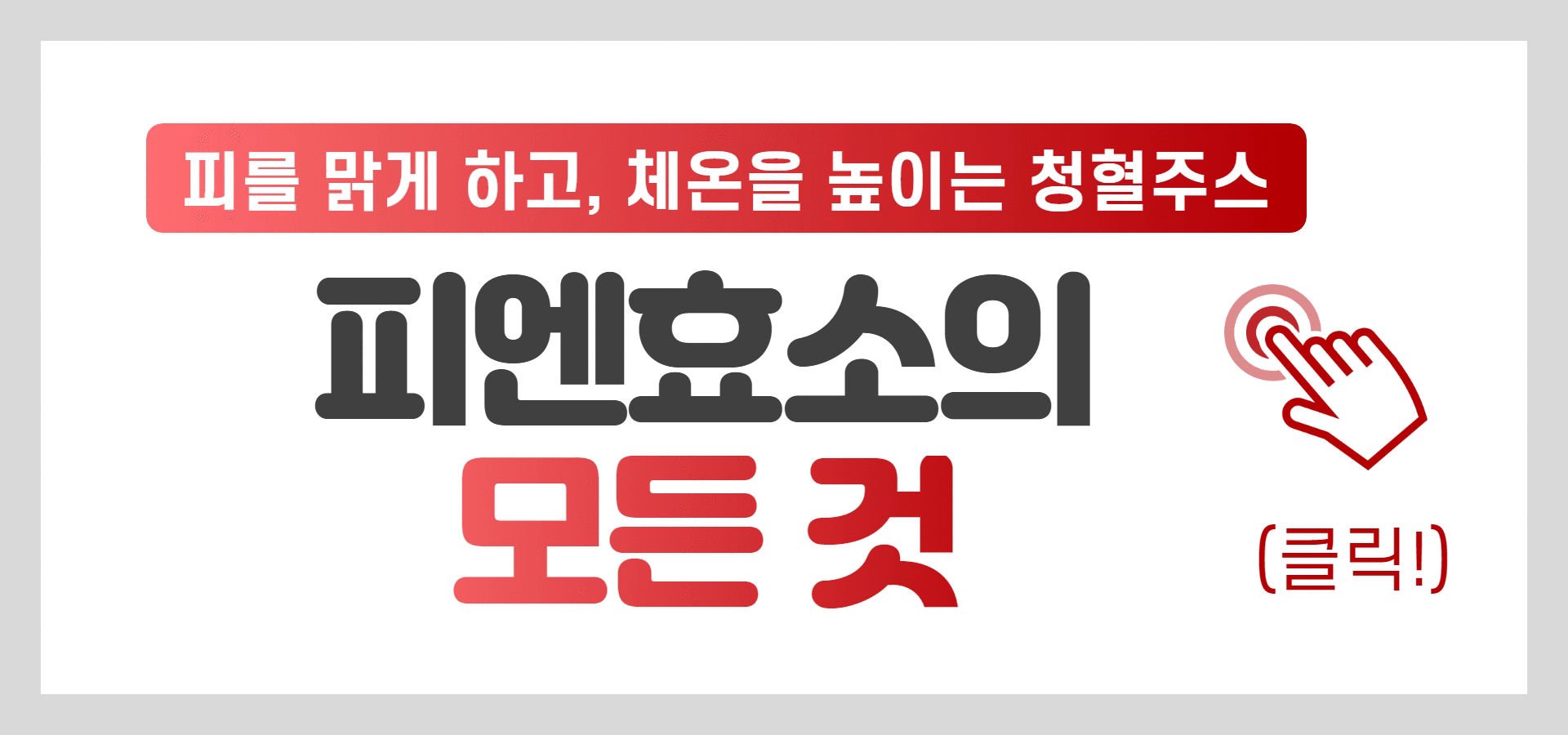 피엔효소는 피 해독과 체온상승 효과를 보다 빠르고 안정적으로 도와 만성질환들의 약으로부터 해방될 수 있도록 기능을 더해 세심한 레시피로 만든 최신버전으로 업그레이드 된 청혈주스 입니다.
