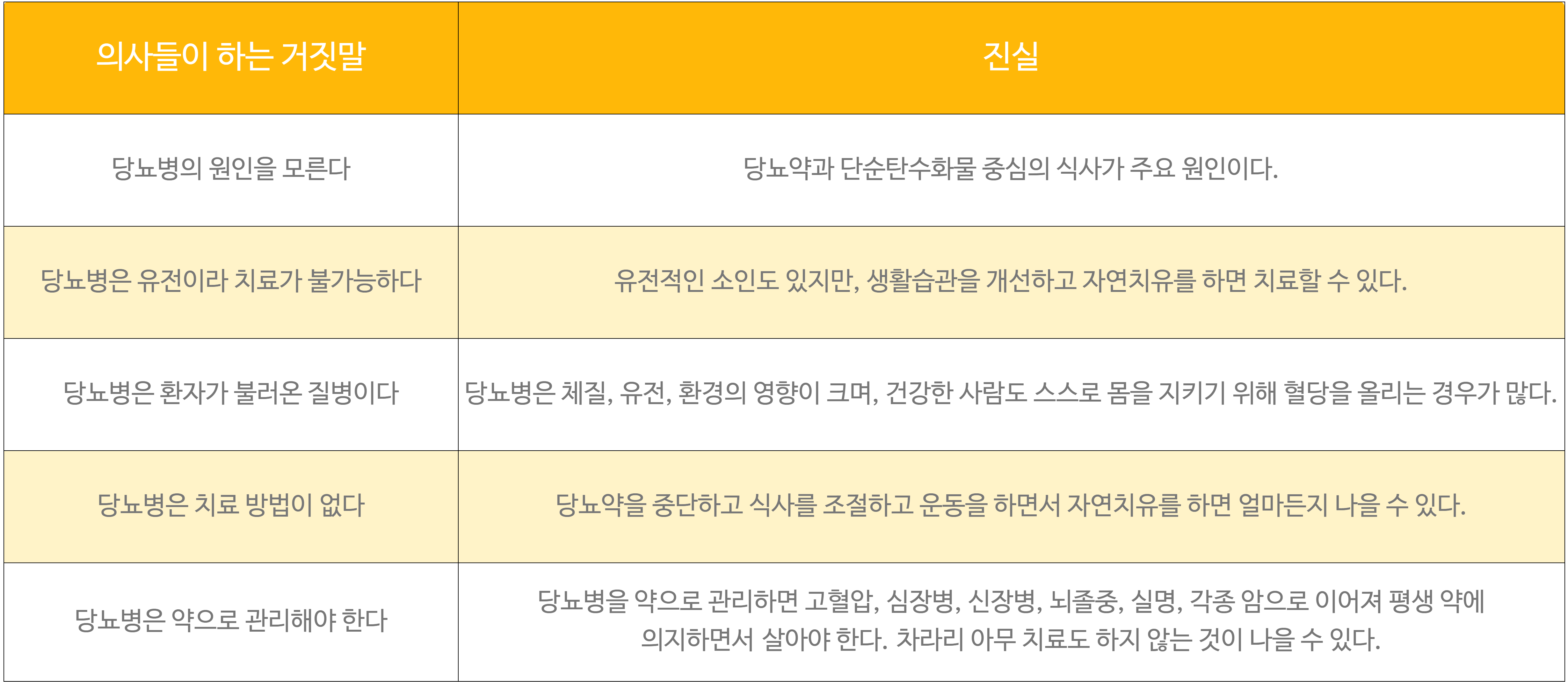 끝으로 <의사들의 거짓말, 그리고 진실>을 간단한 표로 확인해보세요.