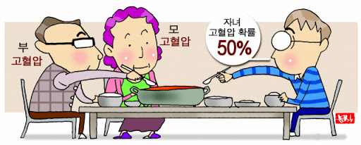 고혈압 환자들이 자주 듣는 말 중에 ‘고혈압은 유전의 영향이 크다?’ 라는 말입니다. 이 말은 맞기도 하지만 틀리기도 합니다. 즉 영향이 아예 없다고 할 수도 없지만 무조건적이지는 않다는 것입니다. 제가 판단하기로는 오히려 부모에게서 물려받는 생활유전의 영향이 더 크다고 생각합니다.
